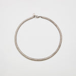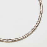 Catena con lavorazione a spina di pesce. Elegante, compatta e flessibile costituisce un punto di incontro tra minimalismo chic ed eleganza sofisticata. E' un passe-partout dal design universale e trasversale. Catena artigianale made in Italy, con placcatura preziosa.