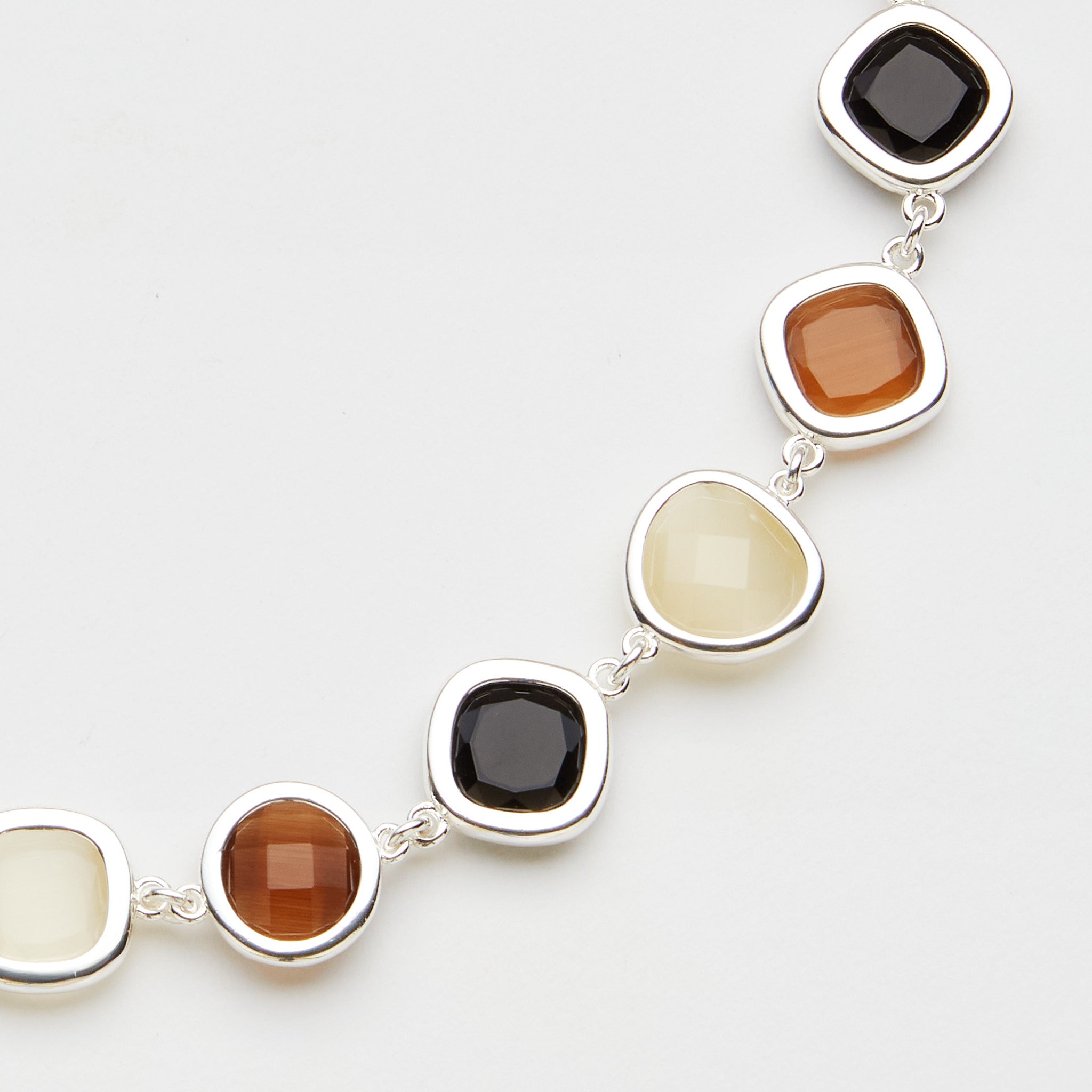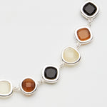 Un'eleganza selvaggia, simbolo di una femminilità indomita. La purezza dell'avorio, la profondità del nero e le nuances del marrone richiamano il pattern animalier. Un gioiello che dà un tocco deciso anche ad un outfit minimal. Il girocollo addolcisce e illumina i lineamenti. Può essere indossato da solo o in abbinamento ad altre collane